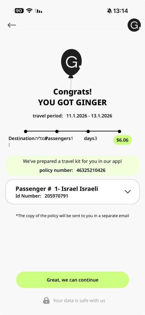 הארכנו לכם את ביטוח הנסיעות אוטומטית עד ה-15.3.26. בחינם, עלינו.