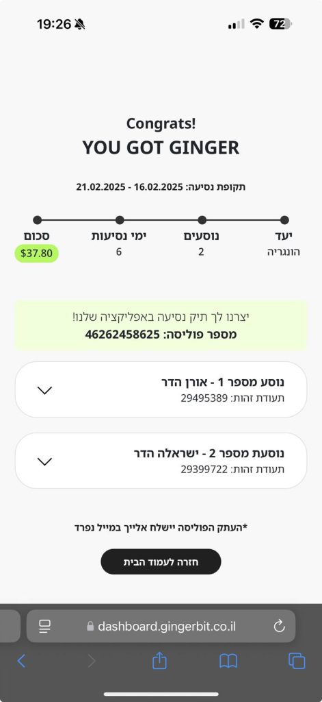 הארכנו לכם את ביטוח הנסיעות אוטומטית עד ה-15.3.26. בחינם, עלינו.